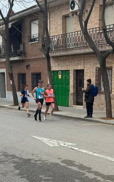 En la segunda subida a la calle Greco se quedó la compañera y ya no la esperé, se fue quedando metro a metro. El quinto kilómetro que incluía la subida por la calle Greco y un poco de bajada por la Calle Ronda se fue a 4:25. Poco después pasé de nuevo por contrameta y ya iba un tanto descolgada y entre ella y yo iban un par de chicas, que ya la habían adelantado en esta segunda vuelta. Iban a buen ritmo y pasada la iglesia me adelantaron también a mí. Iban picadas la una con la otra, siendo una de ellas muy joven (categoría senior) y la otra algo más mayor (categoría Veterana B). Esta chica, con una camiseta de un club de Fuenlabrada corría con muy buen estilo. Estuve casi todo el rato a su altura por el Camino Yunclillos, pero pensé que a la compañera no le iba a hacer mucha gracia porque parecía que las estaba echando una mano, así que las dejé pasar.