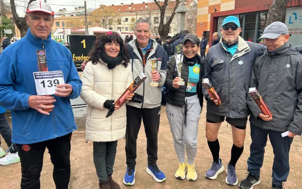 En el Camino Yunclillos, poco antes del giro a la derecha, estaba el sexto kilómetro, que hice en 4:24 y allí ya vi que se me iba el objetivo previsto, que iba a tener que apretar mucho en el tramo más favorable y aún así iba a estar muy complicado. En la zona de chalets se me fueron escapando poco a poco las dos chicas y aunque no miraba atrás, imaginé que la compañera también iba perdiendo terreno, pero con esta chica nunca se sabe porque tiene una capacidad de sufrimiento a prueba de bombas y tampoco me hubiese extrañado que me hubiese cogido. Hice el séptimo kilómetro en 4:24 y mis pocas esperanzas se esfumaron porque sabía que aunque fuese a tope en los últimos ochocientos metros no iba a recuperar lo perdido. Y así fue, los hice a un ritmo de 4:13 pero no pude conseguir el objetivo de 4:15 en el global de la carrera, que fue de 4:18. En los últimos metros la chica más joven consiguió dejar a la más mayor y de este modo, aunque hubiese dado igual que hubiesen invertido las posiciones, la más joven quedó tercera senior y la más mayor segunda Veterana B. Llegué a meta con un tiempo, según mi cronómetro, de 33:51, haciendo más tiempo que el año pasado que hice 20 segundos menos. Mi compañera llegó nueve segundos más tarde quejándose todavía de la espalda. Aún así se hizo con el segundo puesto de la categoría de Veteranas A. La otra compañera de club fue la tercera del equipo haciendo un tiempo de 38:10 que sólo la sirvió para ser sexta de su categoría. Poco a poco fueron llegando los demás, con especial mención a Emilio «el incombustible» que con sus 80 años subió a lo más alto del cajón como el participante de más edad. Por curiosidad estuve viendo qué hubiese pasado si hubiese nacido mes y medio antes y descubrí que hubiese sido tercero de Veteranos C porque el que fue tercero hizo 34:23. Eso sí, no me hubiese dado para ser segundo porque el segundo hizo 43 segundos menos que yo.