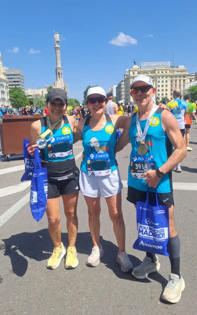 Ha sido el segundo maratón siguiendo el método Galloway y creo que me ha ayudado bastante a dosificarme porque hubo multitud de pinchazos debido sobre todo al calor, que es uno de los enemigos más fieros del maratoniano. En Madrid también hay otro enemigo que es la dureza del recorrido que te va machacando las piernas desde la salida, ya que es todo un sube y baja. Así que contento, sesenta años y el 32 a la buchaca. Y posiblemente este año caiga otro y fuera de nuestras fronteras. Veremos. De nuevo Galloway nos estará esperando.